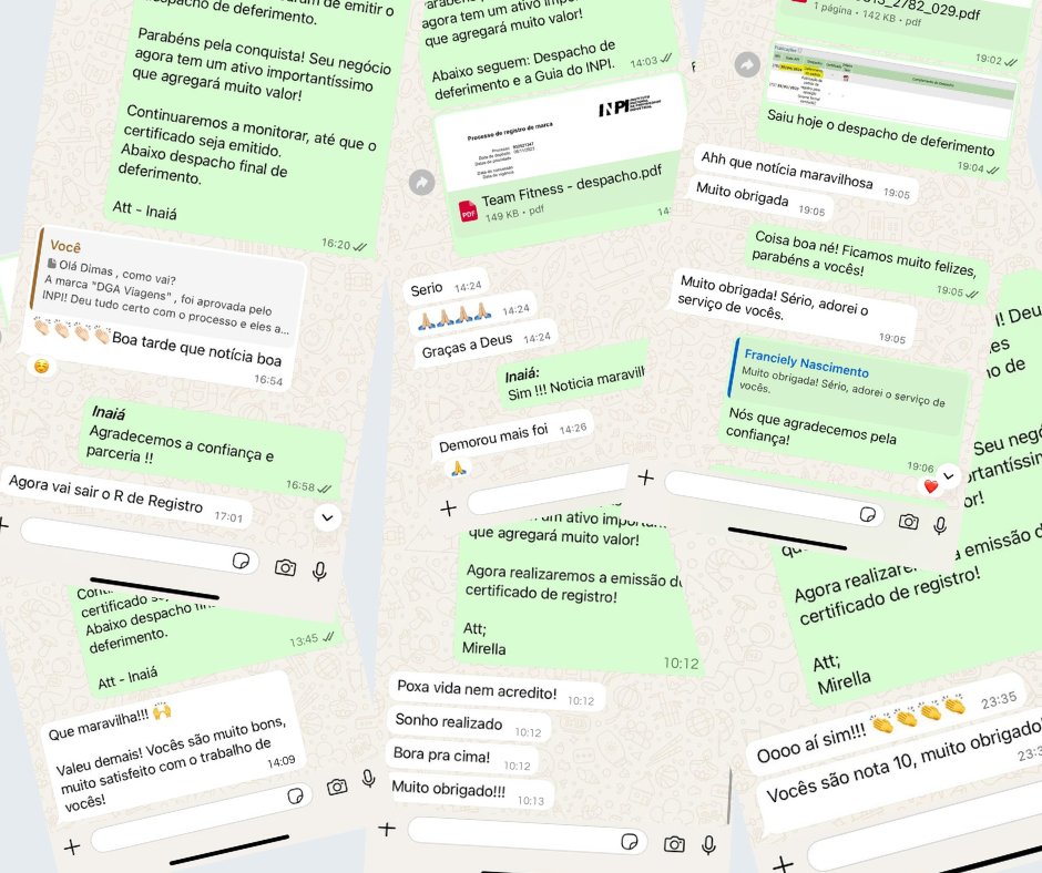 A cada marca registrada com sucesso no INPI, recebemos mensagens genuínas de gratidão e alívio. Esses depoimentos autênticos refletem nosso compromisso diário: transformar o processo de registro de marca em uma experiência segura, transparente e bem-sucedida.